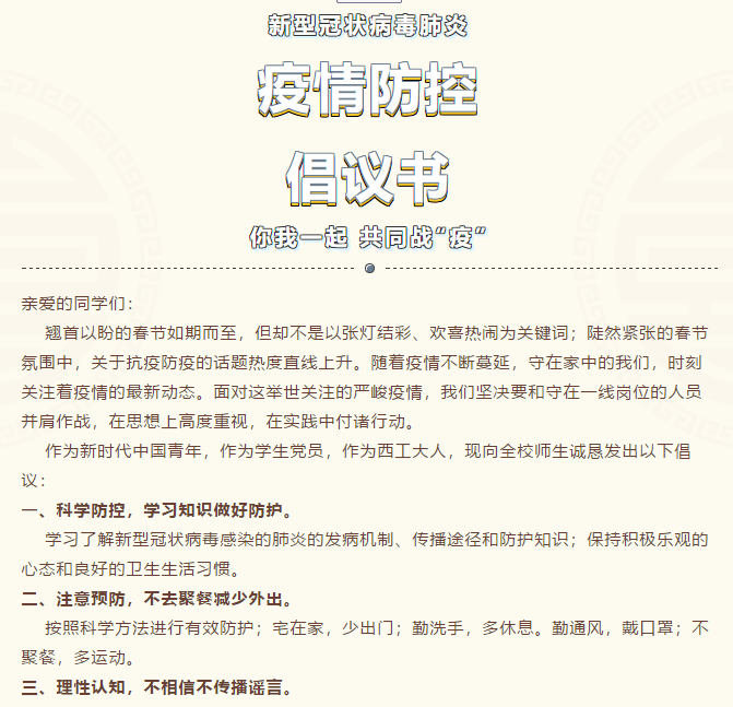 疫情防控期间,支部委员向支部全体党员和所有同学发起了新冠肺炎疫情防控倡议,倡议大家一起战“疫”,共同为抗疫贡献我们自己的一份力量。面对家在湖北的4位同志以及广大的疫区同胞,我们送去了关心和祝福。